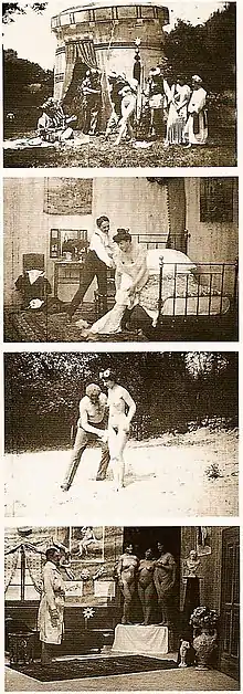 Dickson quitta Edison et créa sa propre société qui produisit le « mutoscope », une forme de projecteur avec manivelle. Ces machines pouvaient produire de petites animations grâce à un système de rotation cylindrique d’images, tirées de morceaux réels de pellicule. Ces machines se trouvaient souvent dans les stations en bord de mer, et montraient (habituellement) de petites séquences de déshabillage de femmes ou des scènes où celles-ci jouaient le modèle d’un artiste. En Grande-Bretagne, elles se firent connaître sous le nom de « What the butler saw » (« Ce que le maître d’hôtel a vu »), tirant son nom du titre d’un des tout premiers et l’un des plus célèbres films pornographiques de cette époque[30],[31].