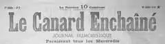 Le Canard enchaîné a été fondé deux fois : une première le , par Maurice et Jeanne Maréchal, aidés par H.-P. Gassier, en riposte à la censure de guerre[2]. Selon l'historien Jean-Jacques Becker, l'origine du titre est incertaine et pourrait être soit une création de l'équipe de journalistes fondateurs, soit la reprise du titre d'une « feuille de tranchées » confectionnée au front par les soldats du 74e régiment d'infanterie : « dans l'une ou l'autre hypothèse, il est évident qu'il y a eu influence consciente ou inconsciente du titre que Clemenceau avait donné à son Homme libre devenu, dans les fers de la censure, L'Homme enchaîné »[3].