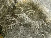 Les traces archéologiques comme les pétroglyphes attestent que le Ladakh fut d’abord sous la domination de l’empire Kushan. Une inscription en Kharosthi retrouvée à Khalatse est attribuée à l’empereur Kushan Vima Kadphises[4],[d 3] (fin du Ier siècle). Le bouddhisme venu du Cachemire a pu être enseigné dans les familles importantes durant cette période sans qu’il s’implante. Il pourrait rester quelques traces de ce bouddhisme au Zanskar[a 3]. La région se divisa en petits royaumes indépendants et fut suzerain du Tibet au début du VIIIe siècle[b 2]. D’autres inscriptions en tibétain, syriaque, kuchéen et sogdien indiquent le passage de marchands[f 1] et souligne le rôle économique important de cette région. Ces pétroglyphes ont été retrouvés plus à l’ouest et sont plus tardifs, IXe siècle environ. La souveraineté du Tibet sur le Ladakh prit rapidement fin avec l’effondrement de l’empire tibétain à la mort de Langdarma en 842. Il faut garder à l’esprit que la tibétisation du Ladakh ne commence qu’après cette période et que bien que des mélanges ethniques aient pu être possible avant, la population devait s’exprimer majoritairement en langue darde et non pas en tibétain[b 3]. Les Ladakhis considèrent ces premiers habitants et les premiers gouverneurs comme étant des descendants du roi Guésar[g 1] et les diverses versions de l’épopée, différentes dans presque chaque village, peuvent nous informer sur leur propre vision de l’histoire.