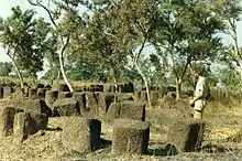 - L'existence de vestiges protohistoriques dans la moyenne vallée du fleuve Sénégal est confirmée dès la fin des années 1970[36]. Des poteries, des disques perforés en céramique[37] ou des objets de parure ont ainsi été mis au jour. Les fouilles effectuées sur le site de Sinthiou-Bara[38], près de Matam, se sont avérées particulièrement fructueuses. Des pièces de provenance lointaine, du Maghreb par exemple, ont ainsi révélé des flux d'échanges transsahariens.