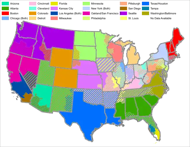 Le transfert des franchises new-yorkaise vers la Californie, mais aussi celle des Boston Braves vers Atlanta, notamment, le quart nord-est du pays n'a plus le monopole du jeu. Le baseball est évidemment pratiqué de longue date dans ces contrées, mais l'implantation de franchises de la MLB à l'ouest du Mississippi et au sud d'une ligne Saint Louis - Baltimore, ouvre de nouvelles perspectives à la MLB et au baseball lui-même. Le plus dramatique déménagement fut sans conteste celui des Brooklyn Dodgers vers Los Angeles qui provoqua même des émeutes dans les faubourgs de New York[13].