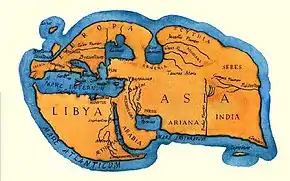 Pour les civilisation antiques de la Méditerranée, il existe un espace maritime oriental qui conduit aux épices et aux aromates. Appelé « mer Érythrée » par les gréco-romains, il correspond à l'étendue d'eau réunissant l'Afrique à l'Inde et donc à l'actuelle mer d'Arabie. Cette mer ainsi définie possède deux golfes, le sinus arabicus (la mer Rouge) et le sinus persicus (le golfe Persique) qui ceinturent la péninsule arabique[47]. Pendant longtemps, l'accès à ces routes leur échappe. Mais à partir du IIe siècle av. J.-C., l'établissement de contacts directs entre l'Égypte et l'Inde est rendu possible par l'affaiblissement progressif des royaumes yéménites qui contrôlaient la route de l'encens. Il intervient au début d'une période historique marquante de paix et de stabilité, durant laquelle cinq grands empires s'établissent : l'Empire kouchan dans le nord de l'Inde, Satavahana dans le sud, dynastie Han en Chine, Parthes en Perse, et Rome impériale en Méditerranée[48].