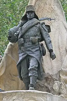 Une autre preuve de la « projection extérieure » du nationalisme espagnol fut la guerre du Rif mais celle-ci, à la différence de la Guerre hispano-marocaine de 1859-1860 soixante ans auparavant, ne réveilla pas de vague d’enthousiasme patriotique — à l’exception de l’exaltation de quelques héros, comme le caporal Noval — mais suscita au contraire un rejet croissant auprès des classes populaires[118]. Au contraire, pour leur part, les militaires se sentirent les « ultime[s] dépositaire[s] du nationalisme espagnol conquérant »[119].