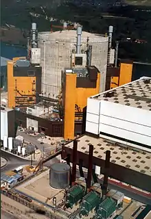 La commission Péon propose l'engagement, avant 1976, de quatre ou cinq réacteurs à eau légère car l'achat d'uranium, même enrichi aux États-Unis, lui semble plus économique à terme que l'importation de pétrole[90]. Deux sociétés vont alors s’affronter pour fournir à EDF ses « chaudières nucléaires » : Framatome[alpha 6], exploitant le brevet de Westinghouse pour la technologie des réacteurs à eau pressurisée (REP)[alpha 7],[106] et la Compagnie générale d'électricité (CGE), exploitant le brevet de General Electric pour la filière des réacteurs à eau bouillante (REB). Pour ce qui est des groupes turbo-alternateurs, deux technologies sont en concurrence : celle d'Alsthom, devenu filiale de la CGE, et celle de la Compagnie Électro-Mécanique, filiale du Suisse Brown, Boveri & Cie (BBC)[107].