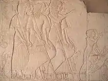 On trouve ainsi dans le temple funéraire de Sahourê[Note 1] des reliefs narrant le retour d'une de ces expéditions qui ramènent du cèdre et des animaux sauvages comme des ours en provenance des montagnes du Liban. D'autres scènes décrivent les arbres à encens du lointain pays de Pount attestant que des échanges existaient déjà entre les deux régions.