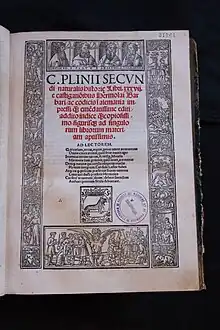 Naturalis Historia, édition de 1669. Le titre latin apparaît au génitif : Naturalis historiæ.