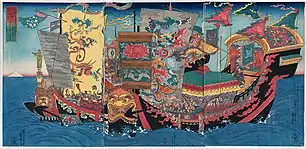 Une jonque chinoise au Japon, au début de la période Sakoku (1644-1648 estampe japonaise)