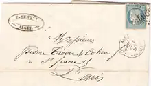 Entre 1850 et 1876, les services postaux du département d'Alger ont utilisé les oblitérations par losanges petits chiffres puis gros chiffres.