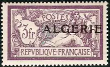 À partir de 1924, les timbres français d'usage courant furent surchargés par le libellé "ALGÉRIE". Une série de 32 timbres fut ainsi émise sur une durée de deux ans :