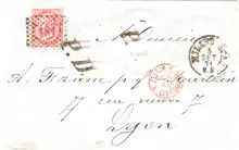 Le Col du Mont-Cenis a été un point de passage très fréquenté entre la France et l'Italie, et notamment pour les courriers. On trouve donc des Marques d'entrée en France par des bureaux savoyards (comme celui de Lanslebourg sur la lettre de 1874 donnée en exemple).