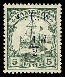 Les timbres du Kamerun allemand ont été surimprimés C.E.F. (Cameroons Expeditionary Force) et surchargés de valeurs allant de un demi-penny à cinq shillings par les forces d'occupation britanniques en juillet 1915[2].