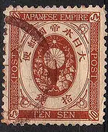 En 1872 une nouvelle série dite des « fleurs du cerisier » est émise. On y voit également le symbole du « chrysanthème impérial » qui figurera sur tous les timbres du Japon jusqu'en 1947.
