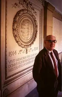 En Italie, l'histoire de la Première Guerre mondiale est dominée par une vision patriotique jusqu'à la fin des années 1960. Dans cette perspective, la guerre est certes perçue comme douloureuse, mais en même temps elle paraît idéologiquement fondée puisqu'elle lutte contre les autocraties, et elle achève l'unité du pays avec l'adjonction au territoire national de Trente et Trieste[55]. L'arrivée au pouvoir de Mussolini en 1922 bride la production historique, la censure n'admettant pas de regard critique sur la participation de l'Italie au conflit. Il n'y a guère que les volumes commandés par la Fondation Carnegie en 1921 auprès de Luigi Einaudi et de ses collaborateurs qui sortent du lot pour cette période, en raison de la précocité de leur conception et de leur ton très neutre, et encore tous n'ont pas été publiés. Le régime fasciste confie la rédaction d'une histoire officielle de l'Italie pendant la Première Guerre mondiale à Gioacchino Volpe, mais celui-ci ne l'a jamais achevée. Dans ce contexte, les ouvrages sur la guerre relèvent pour l'essentiel de la littérature de témoignage (journaux et mémoires) ou de la pure histoire militaire (rapport de l'état-major publié en 1927 pour le premier volume, histoire d'unités engagées dans le conflit…). Dans les années 1930, Piero Pieri (it) et Adolfo Omodeo (it) publient des travaux qui n'écornent pas l'approche patriotique de la guerre bien qu'ils renoncent à la rhétorique triomphaliste du reste de la production historique[55]. Après la Seconde Guerre mondiale, les historiens italiens, libérés de la gangue fasciste, se montrent plus critiques en ce qui concerne la conduite de la guerre. Deux œuvres importantes marquent cette étape historiographique : Alberto Monticone (it) brise le tabou de Caporetto en 1955, tandis que Piero Pieri livre une synthèse sans concession pour la gestion des opérations en 1965. En revanche le bien-fondé de la participation de l'Italie à la guerre n'est pas remis en cause puisqu'elle est toujours justifiée par l'idée qu'il s'agit de la lutte d'une démocratie à la recherche de son unité définitive contre des régimes autoritaires qui freinent son ambition territoriale[55].