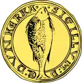 Le premier blason de Dunkerque marque la naissance de l'identité de la commune en 1226, et représente un poisson (un Saint-pierre)[1]. On le connait sous la forme d'un sceau conservé aux archives nationales. |