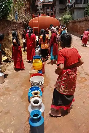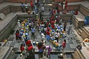 Les Népalais peuvent être vus en train de boire et de se laver ou de laver leur linge dans un hiti, ou de l'emporter chez eux pour se laver, boire et cuisiner.