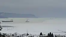 Les transports maritimes sont également affectés par la saison froide. Le fleuve Saint-Laurent est gelé de la fin décembre à la fin mars. La garde côtière canadienne opère un service de brise-glace afin d'ouvrir un canal navigable entre Montréal, le golfe du Saint-Laurent et l'océan Atlantique, mais les conditions de navigation restent extrêmement difficiles entre novembre et avril[17].