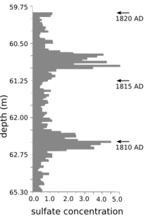 - (en) J. Dai, E. Mosley-Thompson et L. G. Thompson, « Ice core evidence for an explosive tropical volcanic eruption six years preceding Tambora », Journal of Geophysical Research (Atmospheres), vol. 96, no D9, , p. 17361–17366 (lire en ligne)