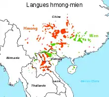 Les Hmong ou Mong (/m̥ʰɔ̃ŋ/) sont un groupe ethnique[8] d'Asie du Sud, présent au Sud de la Chine (principalement dans la province du Guizhou), et au Nord de tous les pays de l'Indochine au sein d'une région appelée « Zomia »[9],[10].