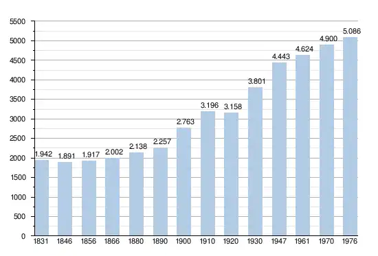- Sources : INS, Rem. : 1831 jusqu'en 1970 = recensements, 1976 = nombre d'habitants au 31 décembre[2].
