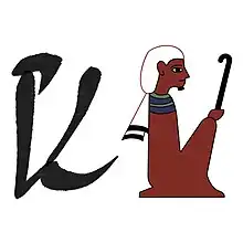Homme assis tenant un bâton (hiéroglyphe égyptien A49)