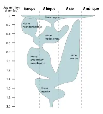 | H. neanderthalensis | 0,45 - 0,03 | Europe, Moyen-Orient, Asie Centrale, Altaï |