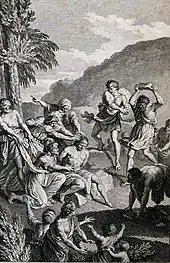 Selon les livres de Samuel, David, futur roi d'Israël, fait la connaissance de Jonathan, le fils du roi Saül, à la fin d'une bataille :