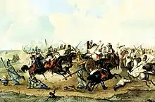 Progressivement, la noblesse hongroise tente de faire valoir son pouvoir au sein du royaume qui compte alors 2 000 000 d'habitants. En 1222, André II de Hongrie proclame la bulle d'or qui exonère la petite noblesse de l'impôt et limite les privilèges royaux. Le pouvoir royal est davantage affaibli par l'invasion mongole[17] et tatare en 1241 qui dépeuple considérablement le pays. Dans le sillage des Mongols et des Tatars sont signalés les premiers Roms[18]. Le royaume se dote alors d'un réseau de châteaux forts afin d'assurer sa sécurité et des villes se peuplent alors au bénéfice d'une bourgeoisie de plus en plus active. En 1301, la mort d'André III de Hongrie signe la fin de la maison Árpád et le début de la domination angevine.