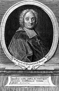 Portrait d'Honoré de Quiqueran de Beaujeu, évêque de Castres par Claude Duflos d'après Jean Ranc (détail). | ||||||||