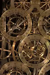L’horloge indique bien plus que l’heure officielle puisqu’elle permet aussi de connaître le temps moyen, le jour[10], le mois, l’année, le signe du zodiaque, la phase lunaire et la position des planètes jusqu'à Saturne[11] ainsi que la position de la Lune.