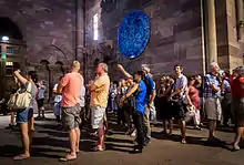 Fruit d'une étude sur la profondeur[13], elle renvoie, d'un point de vue iconographique, au temps renseigné par l'horloge tout en étant une référence à la fin des temps, quand le Christ viendra juger les vivants et les morts[14]. Cette installation temporaire a été retirée de la cathédrale en mai ou .