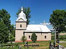 Église paroissiale orthodoxe à ses origines, puis « uniatskym » au milieu du XVIIe siècle, elle est devenue gréco-catholique en 1764 (Gréckokatolícky chrám postavený v barokovo - klasickom slohu je z roku 1764). Elle est située au milieu du cimetière, au sommet d'une colline dominant le village.
