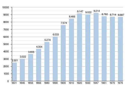- Sources : INS, Rem. : 1831 jusqu'en 1970 = recensements, 1976 = nombre d'habitants au 31 décembre.