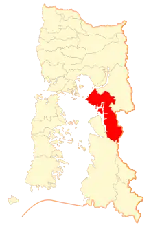 Position de Hualaihué (en rouge) au sein de la Région des Lacs.