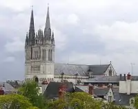 Le , la nouvelle cathédrale d'Angers est consacrée. Elle a les mêmes dimensions en plan que la cathédrale actuelle. Les murs extérieurs de la nef sont encore apparents.