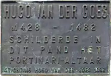 Vers 1475, il exécute pour Tommaso Portinari, banquier et représentant des Médicis à Bruges, son œuvre la plus importante : le triptyque Portinari (Florence, musée des Offices), dont les grandes dimensions sont inhabituelles pour l'époque. Le triptyque arrive à Florence en 1483 et a inspiré des artistes italiens tels que Domenico Ghirlandaio. Giorgio Vasari mentionne en 1550 dans ses Vite que le triptyque Portinari fut peint par « Ugo d'Anversa », ce qui a permis d'attribuer l'œuvre de van der Goes, peintre qui semble n'avoir signé aucun de ses tableaux.