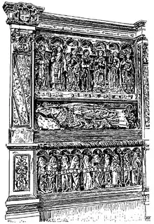- Le personnage du tombeau porte deux anneaux, dont l'un au pouce de la main droite. Il pourrait donc y avoir, outre l'anneau épiscopal, celui de docteur, à moins d'avoir rapport au temporel. Les évêques peuvent porter plusieurs anneaux.
