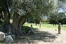Le site préhistorique de Filitosa, sur la commune de Sollacaro, a été découvert en 1946 par le propriétaire des lieux, Charles-Antoine Cesari. Les fouilles entreprises dès 1954 ont montré qu'il fut occupé entre −3 300 et −1 500. C'est au cours de cette période que furent érigés par les Torréens des menhirs de 2 ou 3 mètres[2]. Certains oliviers, parmi les plus anciens de Méditerranée, datent de cette période. En effet, il existe certains pieds âgés de plus de 3 000 ans qui sont toujours en production[3]. Sur le site lui-même cinq statues-menhirs, inscrites dans un demi-cercle, jouxtent un gros olivier, qui doit être âgé de plus de 1 000 ans[1].