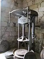 Meules du moulin de Sartène avec verseur à olives