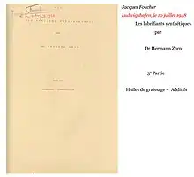 - Brevet NYCO no 1 480 232 délivré le 3 avril 1967, « Composition à base d’esters synthétiques utilisables notamment comme fluide de transmission hydraulique (!) ».