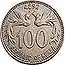 100 hwans | 26,0 mm | 6,74 g | Cupronickel cuivre 75 % nickel 25 % |