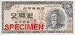 500 hwans | 156 × 73 mm | Syngman Rhee | Valeur | ||