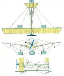 - La première vola le et est reconnaissable grâce aux dérives situées sur le plan mobile avant. Le gouvernail était, lui, situé sous la structure centrale à l'arrière.