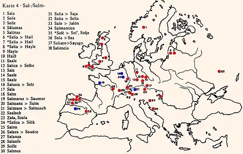 Voir les cartes de cette page pour des exemples d'hydronymie paléo-européenne.