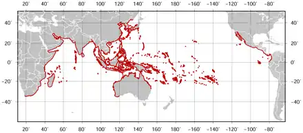 - dans l'océan Indien dans les eaux de Madagascar, de la Tanzanie, de la Somalie, des Émirats arabes unis, du Pakistan, de l'Inde, du Sri Lanka, des Maldives, de la Birmanie, de la Thaïlande, de la Malaisie ;