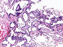 L'hyperplasie adénomateuse atypique (HAA) est une lésion hyperplasique des pneumocytes bordant les alvéoles pulmonaires et présentant des anomalies cytonucléaires discrètes[1]. Ce terme est préconisé par l'Organisation mondiale de la santé dans sa classification des tumeurs de 2011, puis maintenu et précisé dans les versions de 2015 et 2021. Il caractérise une lésion glandulaire précurseur (précédemment dite lésion préinvasive) de très petite taille[2],[3].