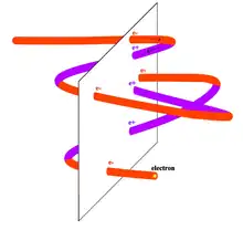 Lors de la capture d'une tranche, d'un instant, la moitié des particules observées serait située sur des lignes dirigées vers l'avant dans le temps et l'autre moitié serait située sur des lignes qui auraient bouclé et se seraient dirigées dans le sens inverse du temps. Wheeler a suggéré que ces sections de ligne qui remontent le temps apparaissaient comme l'antiparticule de l'électron, le positon.