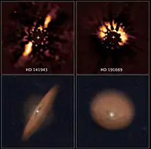 Le processus de formation des étoiles résulte naturellement en l'apparition du disque d'accrétion autour du jeune objet stellaire[15]. À l'âge d'environ 1 million d'années, 100 % des étoiles risquent d'avoir un tel disque[16]. Cette conclusion est soutenue par la découverte de disques gazeux et poussiéreux autour de protoétoiles et d'étoiles T Tauri, ainsi que par des considérations théoriques[17]. L'observation de tels disques montre que les grains de poussière à l'intérieur de ceux-ci grandissent sur de courts intervalles de temps (milliers d'années), produisant des particules d'environ 1 centimètre[18].