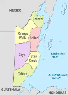 BZ-BZDistrict de BelizeBZ-CYDistrict de CayoBZ-CZLDistrict de CorozalBZ-OWDistrict d'Orange WalkBZ-SCDistrict de Stann CreekBZ-TOLDistrict de Toledo