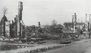 Le village d'Idänpää détruit par l'artillerie allemande lors de la bataille d'Hämeenlinna.