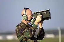 - dans un avion militaire, un véhicule ou une unité en renvoyant une réponse sous forme de signal codé uniquement lorsque l'interrogation est faite et reconnue comme émise par des forces amies ;